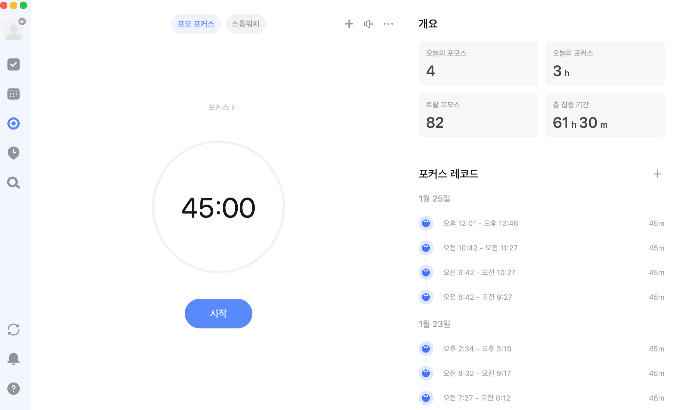 내 방식은 45분간 집중해서 학습하고, 15분간 휴식하는 방법이다. 40분은 학습 시간이 너무 짧게 느껴지고, 50분은 너무 길게 느껴져서 45분으로 설정했다.
